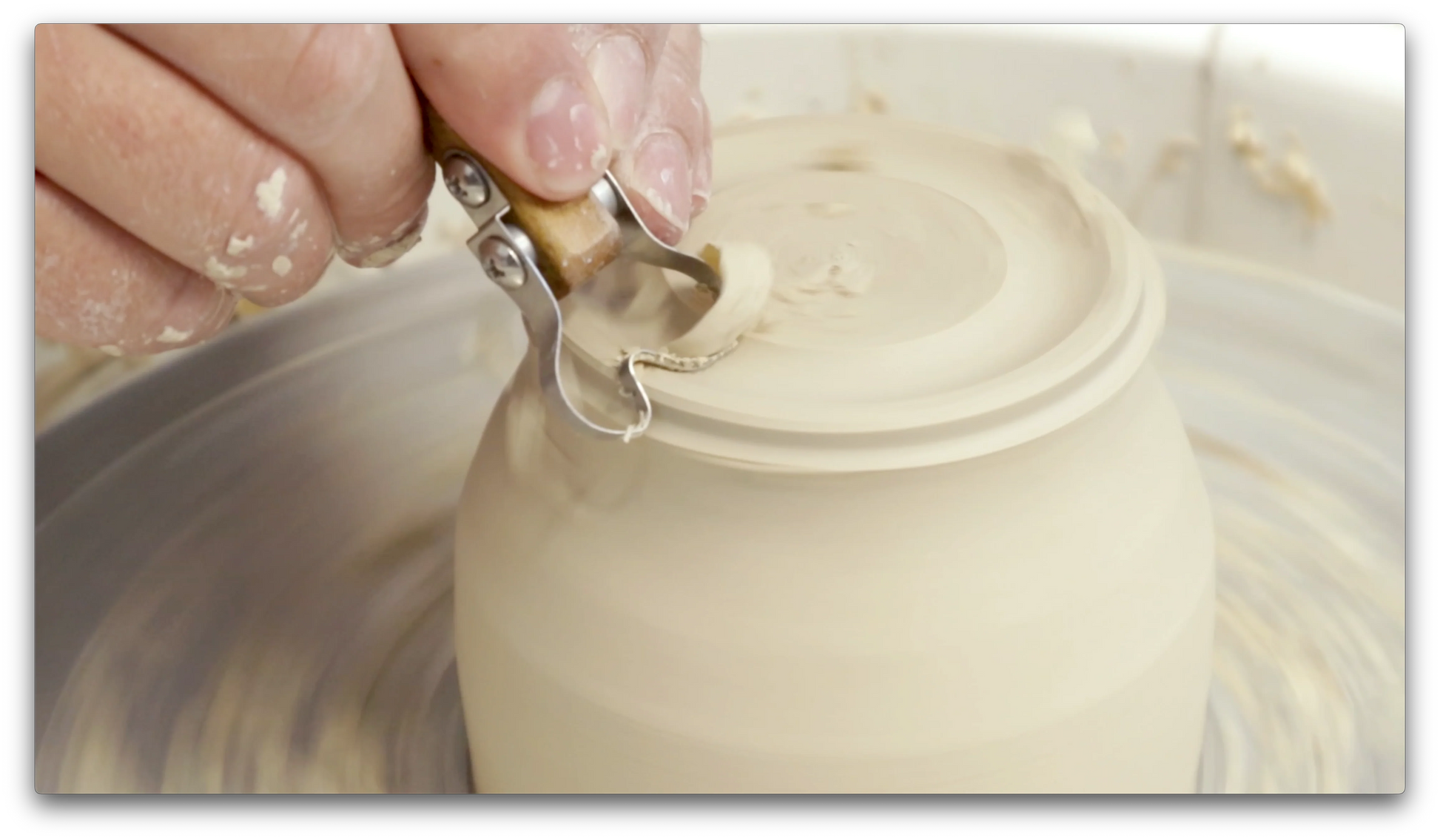 Hold tool perpendicular for wetter clay, slanted for drier clay