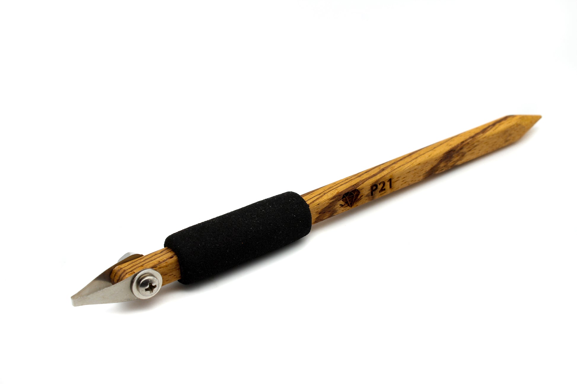 The P21 Straight Square Tip 1 mm Carving Tool is a great tool for creating shallow, square sgraffito lines and navigating tight corners. Our stainless-steel blades stay sharp and consistently create crisp, clean designs. Plus, you can work harder and faster without fatigue thanks to our ergonomic pencil-like handle and comfortable foam grip.