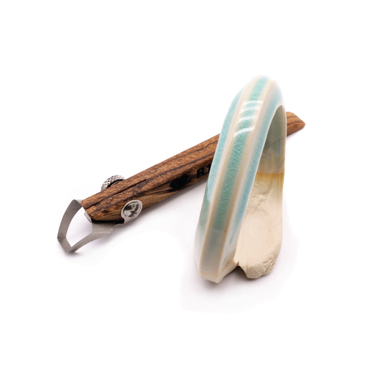 The R1 Trapezoid Handheld Clay Extruder from DiamondCore® Tools was the first in our line of foot and handle making tools. You can quickly create clean and beautiful accents for your ceramic pieces with the R1 Extruder. It can effortlessly slice through a slab of clay to make a trapezoid foot or handle shape. You'll appreciate the tool’s variable depth ski and advanced blade technology as you create feet for slab-built platters, dishes, or plates, as well as handles for mugs, pitchers and other vessels. Just slice it, cut to length and attach.