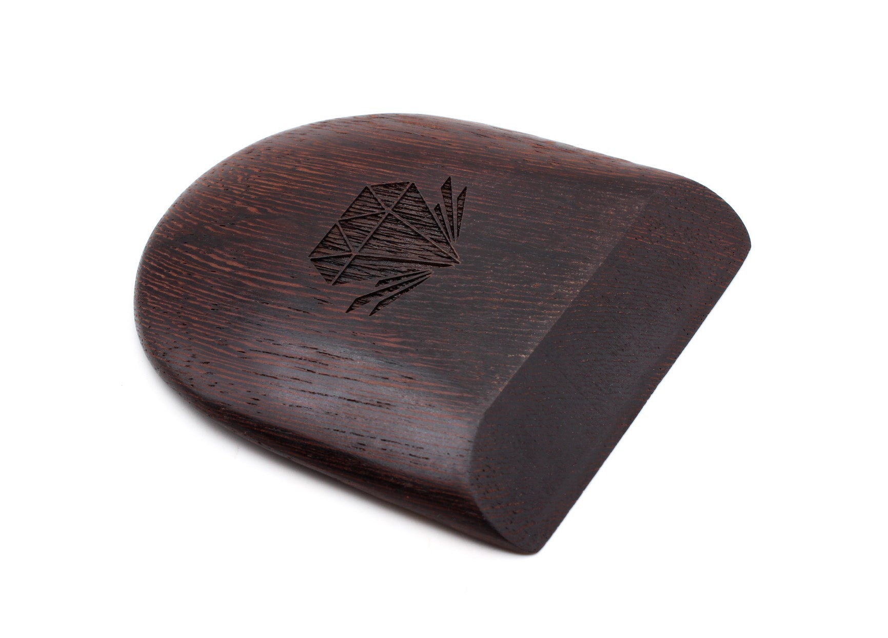 Our Wood Rib 100 mm is kind of a big deal. Even though its wide, curved edge can make for quick work on the wheel, it still feels comfortable in the hand. The flat, tapered end can be used to smooth walls and remove material from the outside of your piece, and the concave back side helps create large, gentle curves better than a flat rib. While the comfortable size sits nicely between your thumb and fingers, the novel, diamond-grid design makes it easy to hold from any angle.
