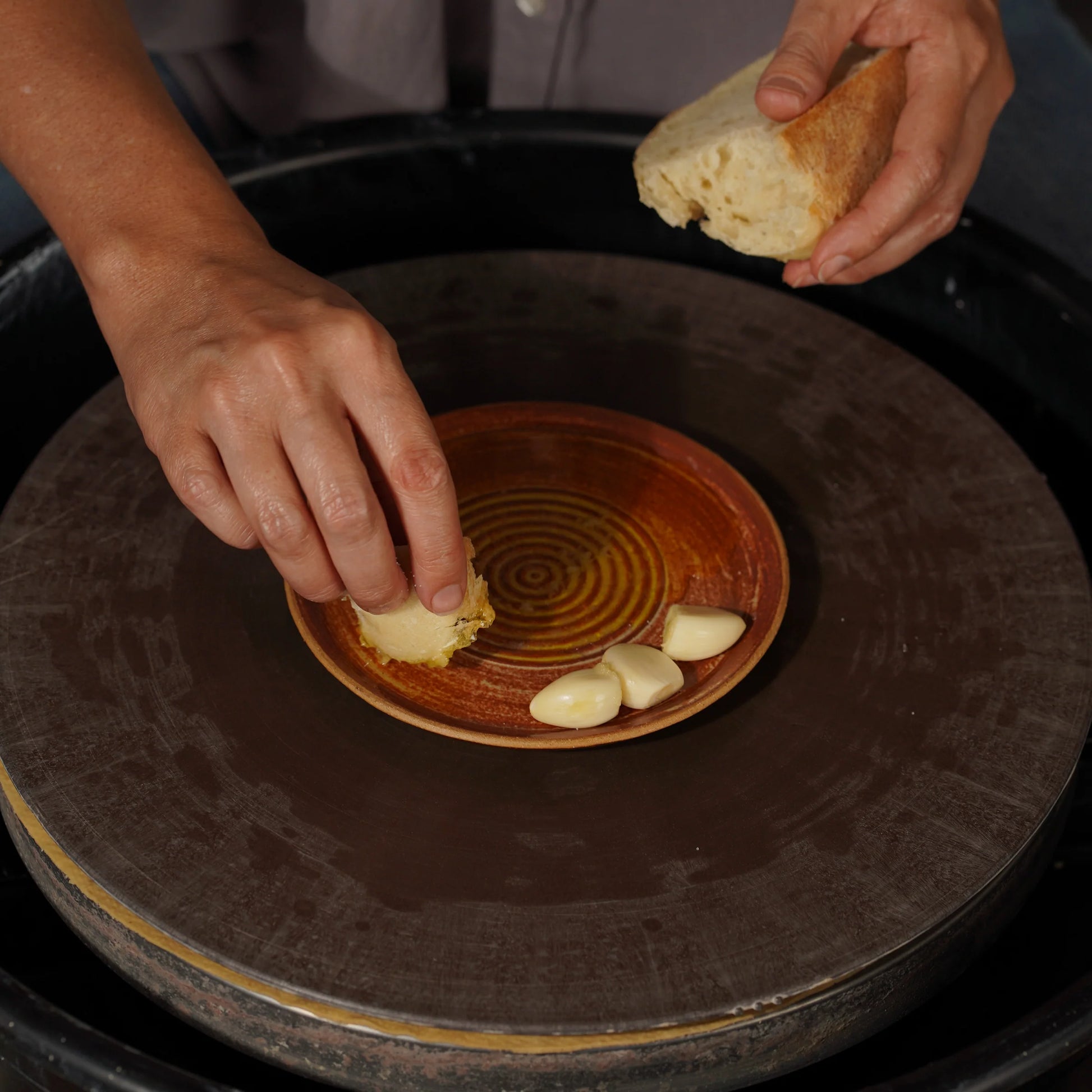 The Garlic Plate tool was fine tuned to create ridges perfect for grating garlic! You can use the top of the tool to shape the lip of plates by pulling up the edges and adding smooth curves. The ridges on the bottom of the Garlic Plate Tool are designed for altering the face of the plate. Whether pressed onto clay on a spinning wheel or dragged across a slab, the depth and distance between each zig and zag was tested for peak garlic grating when you rub a clove over the texture created.